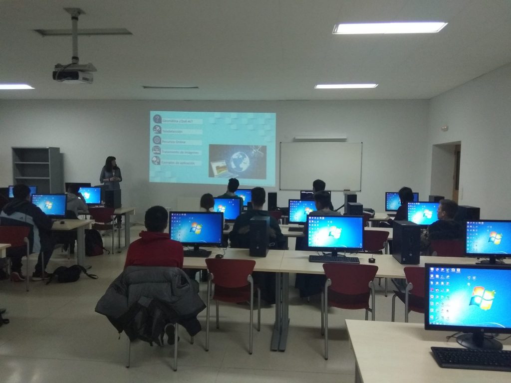 Esta la tarde han vuelto los alumnos del IES Alonso de Madrigal @iesalonsodemad1, de Ciclos Formativos de la familia Profesional de Informática. María Sánchez Aparicio de @Ener3Dmap Cátedra VIII Centenario de la @usal les ha impartido el taller Satélites: Vigilantes de la Tierra