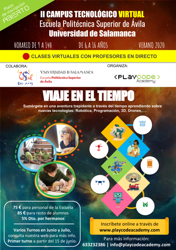 Campus Tecnológico Virtual PlayCode Academy extensionjunio 16, 2020Noticias Inscripciones aquí https://playcodeacademy.com/campus-tecnologico-virtual-usal-avila/